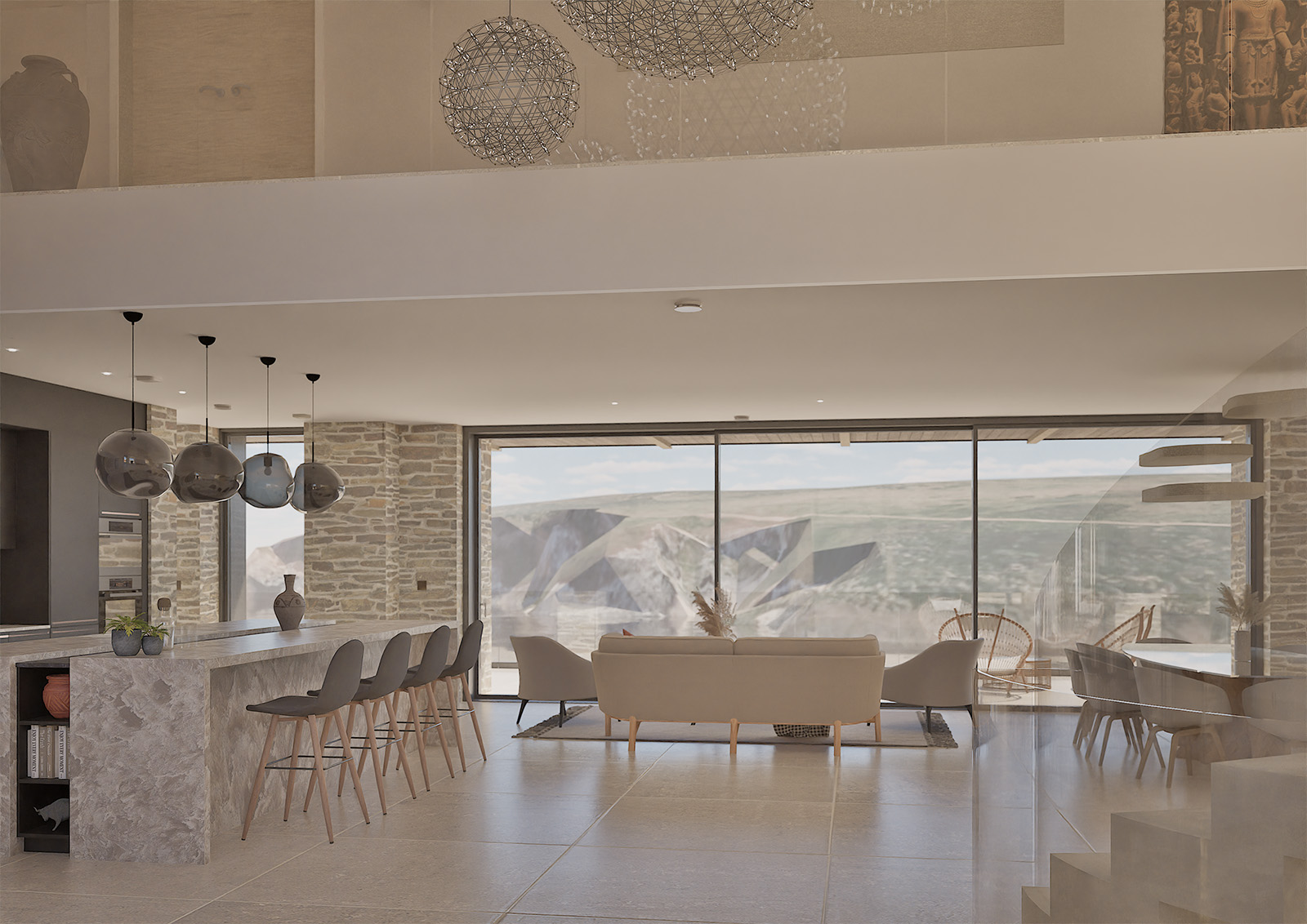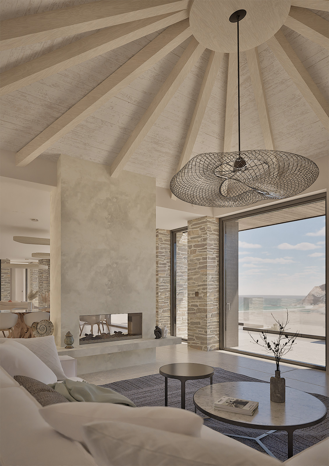 The site’s sloping topography allows for additional floor space via a “cut into the hill” strategy. Living spaces are arranged to take full advantage of north‑east sea views, with light channels designed on the sunny south side to draw daylight deep into the plan. Local craftsmen and suppliers were prioritised to deliver authenticity in materiality and finish.